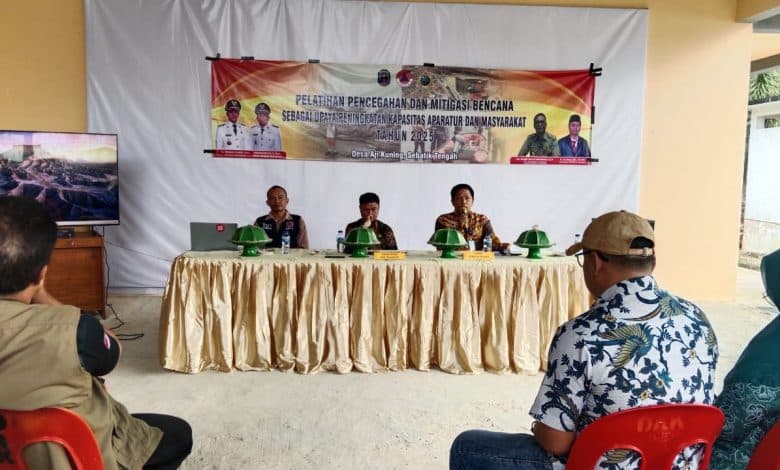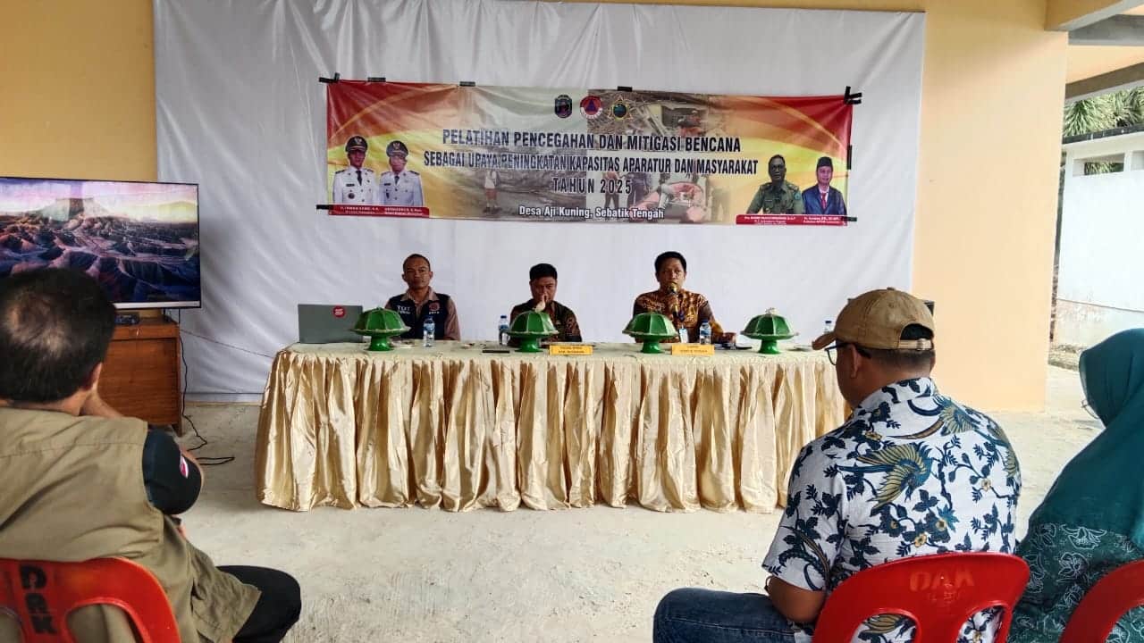 SEBATIK TENGAH – Pelatihan Pencegahan dan Mitigasi Bencana Sebagai Upaya Peningkatan Kapasitas Aparatur dan Masyarakat Tahun 2025 digelar di Desa Aji Kuning, Kecamatan Sebatik Tengah, Kamis 27 November 2025. Kegiatan ini menjadi ruang penting bagi pemerintah kecamatan, desa, serta masyarakat untuk memperkuat kesiapsiagaan dalam menghadapi berbagai potensi bencana di wilayah perbatasan.