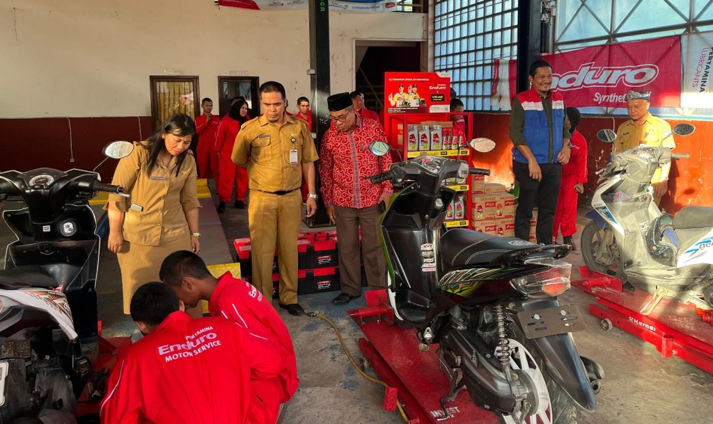 TARAKAN – Upaya memperkuat pendidikan vokasi kembali diwujudkan PT Pertamina Lubricants. Melalui Sales Region VI, perusahaan resmi meluncurkan bengkel sekaligus menandatangani kerja sama program Enduro Home Service dengan SMK Negeri 2 Tarakan, Senin (8/12/2025). Program ini menjadi langkah nyata Pertamina dalam menghadirkan pengalaman belajar berbasis industri bagi para siswa.