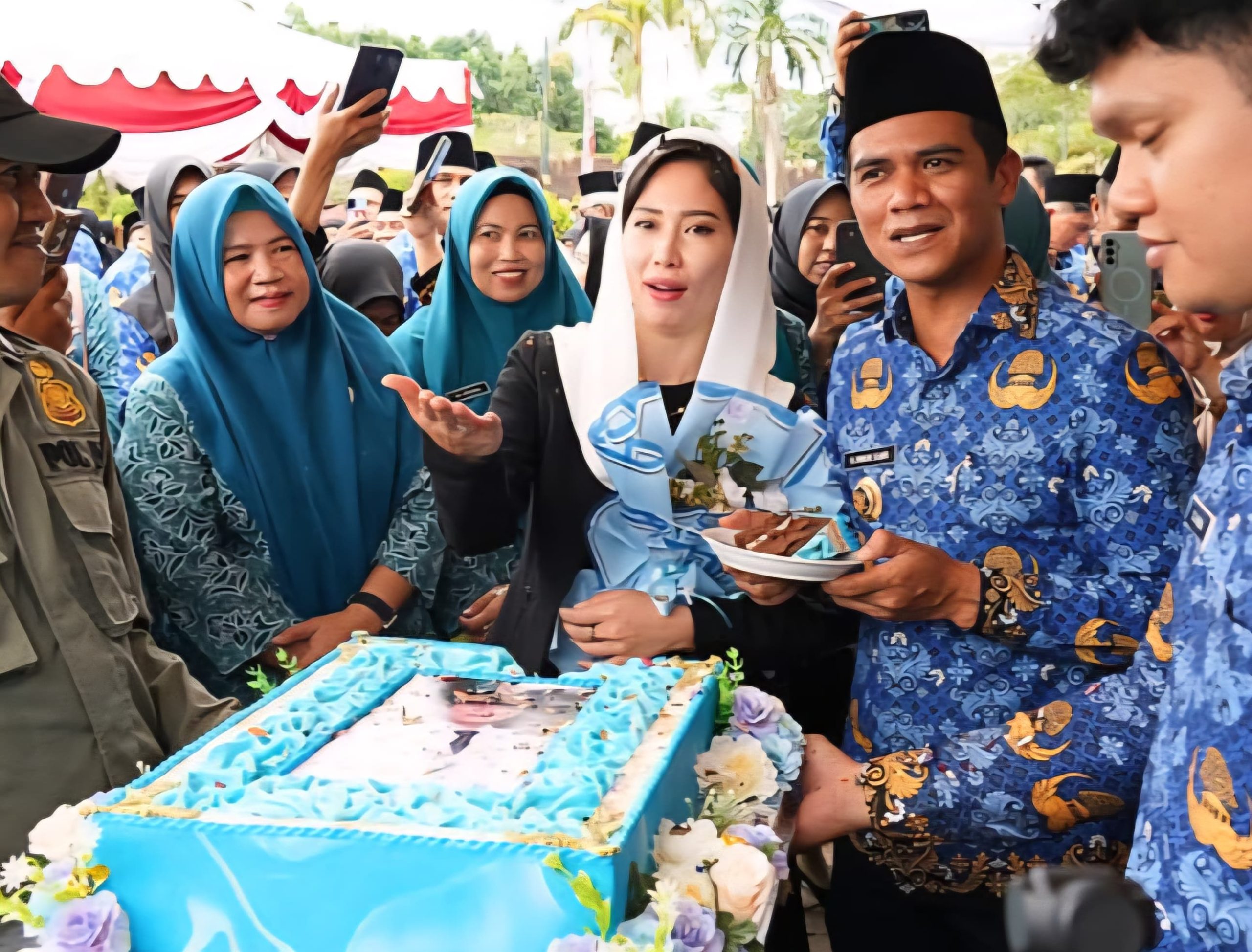 Kejutan itu muncul sesaat setelah Bupati, Wakil Bupati Hermanus SSos, Plt. Sekda, para asisten, dan seluruh kepala OPD memberikan ucapan selamat kepada para PPPK yang baru diangkat. Tiba-tiba dari arah panggung terdengar alunan musik ‘Selamat Ulang Tahun’ dari grup band Jamrud, membuat Bupati Irwan tampak terkejut sekaligus tersenyum lebar.