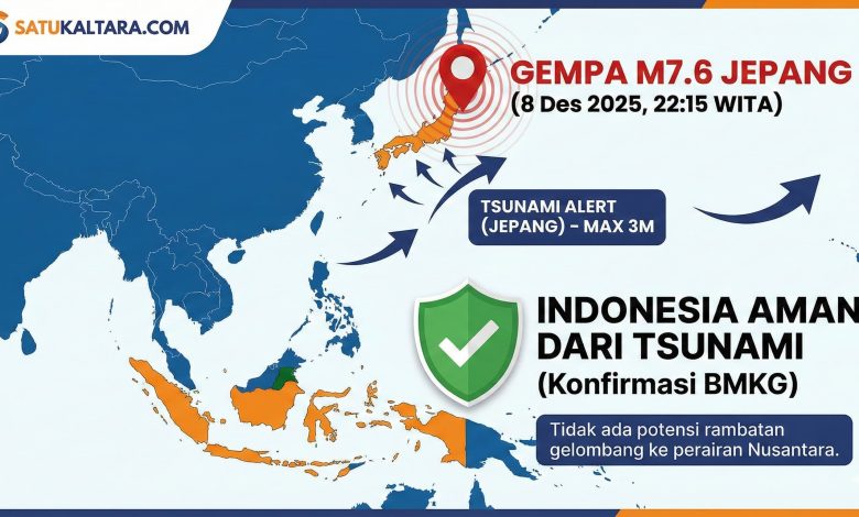 TARAKAN – Gempa bumi tektonik berkekuatan besar mengguncang wilayah lepas pantai utara Jepang pada Senin malam, 8 Desember 2025. Peristiwa seismik ini tercatat terjadi tepat pada pukul 23.15 waktu setempat atau setara dengan pukul 22.15 WITA. Badan Meteorologi Jepang (JMA) melansir data bahwa episentrum guncangan terletak di lepas pantai Prefektur Aomori. Pusat gempa terdeteksi berada pada kedalaman yang tergolong dangkal, yakni di kisaran angka 37 hingga 50 kilometer di bawah permukaan laut.