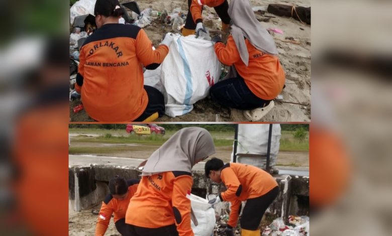 Terpantau, sebanyak 20 personel Korlakar diterjunkan langsung ke bibir pantai untuk memungut tumpukan sampah yang mengotori kawasan pesisir. Tampak juga mereka memungut sampah plastik sekali pakai hingga limbah rumah tangga yang terlihat berserakan di sejumlah titik. Sampah-sampai ini sangat mengganggu pemandangan sekaligus mengancam ekosistem laut.
