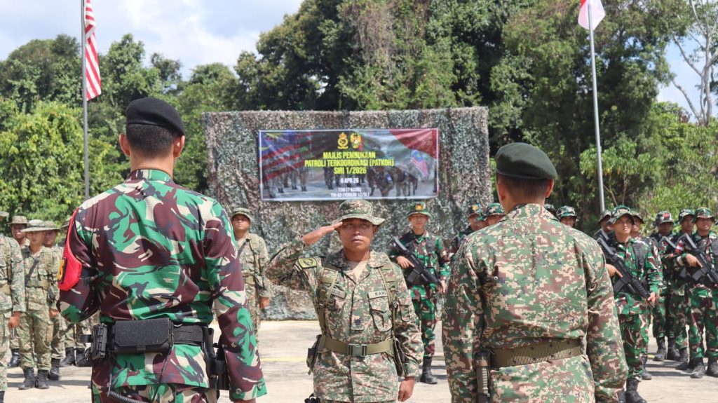 NUNUKAN – Di saat negara – negara Barat dan Timur Tengah bersitengang akibat perang AS – Israel versus Iran, Tentara Nasional Indonesia (TNI) melalui Satgas Pamtas Batalyon Kavaleri 13/Satya Lembuswana dan Tentara Darat Malaysia (TDM) melalui Batalyon 7 RAMD justru menggelar kegiatan yang positif dan meningkatkan kekompakan. Hal ini terpantau setelah kegiatan kolaborasi kedua negara melalui Patroli Terkoordinasi (Patkor) Seri 1 Tahun 2026 di Pos Serudong-Malaysia dibuka pada Senin, 6 April 2026 lalu.