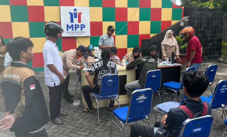 TARAKAN – Pemeriksaan Pajak Kendaraan Bermotor (P2KB) yang digelar di halaman Mal Pelayanan Publik (MPP) Tarakan, Selasa (14/4/2026), tak sekadar razia biasa. Kegiatan ini justru menjadi ajang pelayanan langsung bagi masyarakat untuk melunasi kewajiban pajak kendaraan di tempat.
